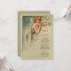 Este elegante menú de boda Art Nouveau se inspira en el estilo emblemático de Alphonse Mucha. Con una mujer elegante adornada con flores y motivos intrincados, la carta irradia un encanto vintage con suaves tonos de beige, oro, verde sabio y melocotón. El ilustracion en la parte delantera está muy bien complementado con un diseño minimalista en sentido inverso, lo que hace de este menú una elección perfecta para las parejas que aprecian el arte clásico y la elegancia atemporal. Ideal para un boda de temática vintage o de inspiración artística, este menú le dará un toque de refinamiento a su evento especial.