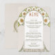 Tarjeta de menú en estilo Art Nouveau para su boda con tema vintage de Alphonse Mucha en un diseño floral, romántico y caprichoso. Los florituras victorianas complementan las fuentes clásicas del art déco.