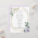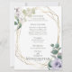 MENÚ DE BODAS | Flores de lavanda y crema de acuarela - un marco geométrico dorado de estilo terrario multifacético adornado con vegetación botánica y ramos florales. El reverso es un color coordinado complementario. Personalice el texto, el estilo de fuente, el color y el tamaño. Obra de arte original creada para BarefootBride™ por © WhimsicalArtwork™ - Esta es parte de una suite completa de papelería de boda con papelería de boda, baby shower y otros eventos coincidentes.