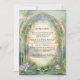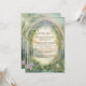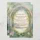 Menú de cena de coordinación para la colección Design # MSP0111. Diseño vertical rectangular de 5" x 7". Escena montañosa de estilo Art Nouveau con pinos altos, flores silvestres en un prado y un delicado marco abovedado con follaje de hojas de vinagre para una romántica boda en las montañas. Magical, etéreo con un portal para el amor eterno. El reverso tiene la misma escena en todo color. En la colección se puede adquirir un conjunto completo de productos. MSP0111