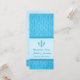 Menú de cena de recepción de boda Fleur De Lis azul acuático a doble cara. Si tiene alguna pregunta o necesita ayuda para ajustar sus platos a este menú, por favor contácteme para obtener más ayuda. Diseñado de manera única por Sarah Trett.