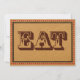 El estilo occidental se plasma deliciosamente en este menú rústico de boda o fiesta campestre. El diseño EAT de estilo vintage sobre fondo de patrón de madera es igualmente adecuado para una cena formal que para una barbacoa campestre. Ideal para una fiesta o boda de estilo rodeo para vaqueros y vaqueras.