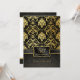Menú de bodas de oro Vintage damasco negro y dorado metálico número 50. Con patrón damasco negro y gris. Celebración de bodas de oro número cincuenta.