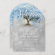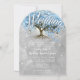 Romántica Tipografía Azul Dusty Elegante Rústico Bajo Las Estrellas Tale de hadas Mason Jar Radiant Boda Bell Blue Heart Leaf Firefly Wedting sobre fondo de color de agua gris Invitaciones de árbol singulares