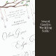 Estas hermosas tarjetas de menú Sweet Garden son la adición perfecta para cualquier elegante boda al aire libre, o cualquier tema boda. Ramas de árboles con banderas blancas y elegantes adornan el menú.