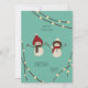 Send a warm holiday hello with this non-photo illustrated card: two cozy snowmen in knit hats and scarves waving beneath glowing string lights on a textured teal background. The soft, hand-drawn style feels whimsical and modern.