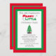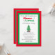 Los navidades trataron con alegres invitaciones para fiestas. Invitar presenta temas de vacaciones rojas y verdes con copos de nieve grises, árbol de Navidad y regalos