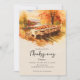 Esta acuarela generada por IA representa una mesa de Acción de Gracias decorada con gusto, situada en el fondo de una puesta de sol de otoño.