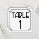 El diseño inspirado en "Gatsby" Art Déco rodea elegantemente esta tarjeta de número de mesa, perfecta para fiestas y recepciones de boda que necesitan números de mesa. Establece el ambiente con estilo. Compra tantas tarjetas como necesites, están prediseñadas para ti, ahorrándote la necesidad de intentar personalizarlas tú mismo.