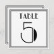 Marco inspirado en "Gatsby" Art Déco rodea elegantemente esta tarjeta de número de mesa, perfecta para fiestas y recepciones de boda que necesitan números de mesa. Establece el ambiente con estilo. Compra tantas tarjetas como necesites, están prediseñadas para ti, ahorrándote la necesidad de intentar personalizarlas tú mismo.