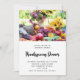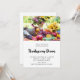 Una invitación a la cena de Acción de Gracias con una fotografía de la tradición de las vacaciones de Acción de Gracias. Una mesa puesta con cornucopia, verduras y frutas de cosecha.