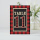 Invitación Mesa rústica número 11 con cuadros de búfalo rojos