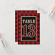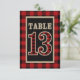 Invitación Mesa rústica número 13 de cuadros rojos y negros d