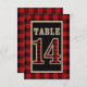 Invitación Mesa rústica número 14 con cuadros de búfalo rojos