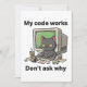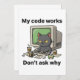 El motivo perfecto para todos los desarrolladores, programadores y científicos informáticos. Muestra un gato de aspecto gruñón sentado frente a la pantalla y presentando un dicho ingenioso. Una declaración ideal para programadores humorísticos y relajados.