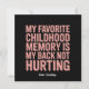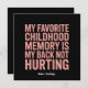Revivir los buenos viejos tiempos con la hilarante frase "Mi recuerdo favorito de la infancia es mi espalda, no duele". Un diseño divertido que captura perfectamente el tiempo que todos perdemos, ¡cuando nuestros recuerdos favoritos no implicaban dolor de espalda! Gran texto de chiste para risas y nostalgia.