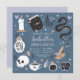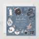 Planee su fiesta de cumpleaños de 16 años con temática dulce, gitana o halloween con estas espeluznantes invitaciones de moda en una paleta de colores inspirada en la naturaleza boho. El diseño incluye ilustraciones de una serpiente, libros de ortografía, velas, tarros, cráneos, tarjetas de tarot y pociones alrededor de los detalles de la celebración de Sweet 16.