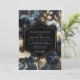 A dramatic and opulent design features deep midnight blue blooms intertwined with accents of creamy ivory and metallic gold foliage. This richly textured artwork evokes a sense of sophisticated romance.