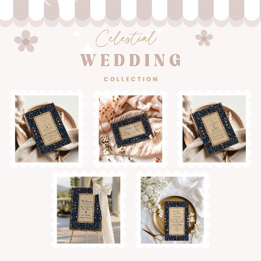 A stunning celestial-inspired design featuring intricate gold constellations and deep midnight blue floral motifs. This invitation evokes the mystery of the cosmos and the romance of starlit nights, making it perfect for elegant evening weddings, celestial or gothic celebrations, and couples who love timeless, otherworldly beauty.