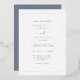 Esta elegante invitación a la boda presenta un sencillo diseño clásico con una tipografía de Relieve metalizado plateado en el frente y un color azul polvoriento oscuro en el reverso. Personalice sus datos clave, incluidos los nombres de novias y novios, la fecha, la ubicación y la hora del boda.