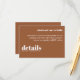 Mantén tu papelería boda elegante y sencilla con esta invitación a detalles mínimos del Boda. Con un diseño limpio y moderno con tipografía atemporal, esta tarjeta es perfecta para compartir toda la información importante sobre su gran día. Su diseño minimalista garantiza que tus detalles permanezcan en el centro de atención y complementen cualquier estilo boda. Ideal para parejas que aprecian la elegancia y la estética contemporánea.