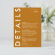 Mantén tu papelería boda elegante y sencilla con esta invitación a detalles mínimos del Boda. Con un diseño limpio y moderno con tipografía atemporal, esta tarjeta es perfecta para compartir toda la información importante sobre su gran día. Su diseño minimalista garantiza que tus detalles permanezcan en el centro de atención y complementen cualquier estilo boda. Ideal para parejas que aprecian la elegancia y la estética contemporánea.