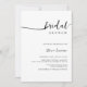 Invite a los invitados a una celebración de moda con esta minimalista invitación al brunch de novias que incluye un moderno guión negro sobre un brillante fondo blanco. El diseño limpio y la caligrafía fluida crean un ambiente atemporal y elegante, perfecto para honrar a la futura novia con estilo. Personalizar con los detalles de su evento, información de RSVP y nota del registro para un toque personal y pulido.