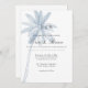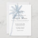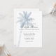 Utilizamos un hermoso ilustracion vintage de una palmera para esta elegante y elegante invitación a la boda. El azul turbio combina con muchos temas bodas y es un magnífico color neutro, llamativo e inesperadamente atractivo en este vintage dibujo de la palmera. Un monograma mínimo honra la parte superior de la invitación a la boda.