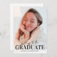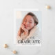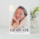 Tarjeta moderna de invitación de graduación 2025 con una foto del graduado, el lindo dicho "gorras al graduado", su nombre y año de clase. Al revés hay otra imagen, los detalles de su graduación y sus planes para el futuro.