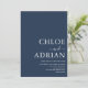 Simple invitación mínima de boda azul de la Marina para que invites a amigos y familiares a celebrar a tu boda. Todo el texto es fácil de personalizar con la plantilla proporcionada.