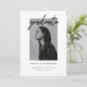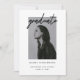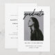 Minimal Black White Script Photo Graduation Party Invitation. A modern and elegant, black and white graduation party invitation, designed with script lettering, and a customizable photo. Personalize with your info on the front and back of the card.