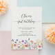 Celebrate a sweet milestone with this elegant first birthday invitation featuring delicate wildflower illustrations and modern handwritten script typography. Designed with a clean white background and soft pastel florals along the bottom, this invitation is perfect for a garden, floral, or “little wildflower” themed birthday party.