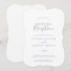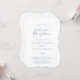 Esta invitación de recepción de boda minimalista con hojas y dusty blue es perfecta para una elegante fiesta post-elopamiento. El diseño cuenta con una simple silueta de vegetación en azul pizarra claro con estilo minimalista clásico. Las tarjetas de RSVP se venden por separado, o puede agregar información de RSVP en la parte posterior de la tarjeta.