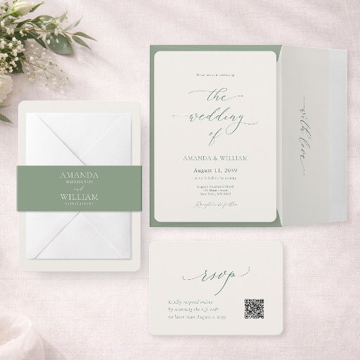 Sage Green & Ivory Wedding Stationery CollectionDiseñado por Larysa Nebosenko Koshel