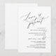Esta es la invitación de la fiesta de boda reprogramada (pospuesta / aplazamiento) tarjeta (amor en paciente), en el tema de diseño minimalista simple y limpio moderno, fuente negra.