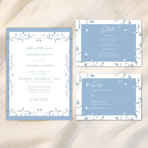 Invitación Minimalist Dusty Blue Chinoiserie Floral Wedding