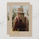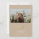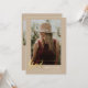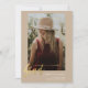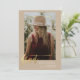 a modern minimalist design that features a calligraphy script in gold and a gold-framed photo on the front of the card, and a 2nd photo along with personalized information on the back.