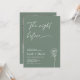 Simple rehearsal dinner invitation featuring an sage green background, a white modern calligraphy heading and line floral illustration. The couples photo appears in a sage frame on the back. Ideal for someone looking for a minimalist sage green rehearsal dinner invitation.