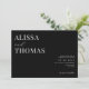 Invitación nupcial moderna con diseño de tipografía minimalista en color blanco y negro. Fácilmente personalizable con toda su información para invitaciones de boda personalizadas,