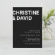 Invitación minimalista en letras negras y blancas
