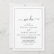 Esta minimalista invitación a la boda We Do es perfecta para un simple boda. El moderno diseño romántico presenta una tipografía clásica en blanco y negro, acompañada de una caligrafía rústica y elegante con un estilo de letra a mano vintage. Personalizable de cualquier color. Mantenga el diseño simple y elegante, tal como está, o lo personaliza añadiendo sus propios gráficos y obras de arte.