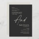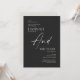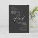 Estas invitaciones a bodas formales de 5" x 7" presentan un diseño de estilo minimalista con grabados de marfil en un fondo negro con los siguientes marcadores de posición, honorifico, nombre de padre, presentación, nombre de pareja boda, nombre y apellidos, día de la semana, fecha, hora, lugar, dirección y recepción.