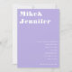 Sorprende a tus amigos y familiares con estas invitaciones de boda modernas y elegantes, con fondo lila de moda, código QR personalizado y texto. Agrega fácilmente tu propia información y foto haciendo clic en la opción "personalizar".