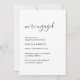Estas invitaciones elegantes, en blanco y negro son simples y minimalistas, pero muy elegantes, gracias a la escritura moderna escrita a mano que dice "estamos comprometidos", y al diseño limpio.