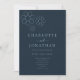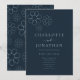 Hermoso patrón geométrico retro minimalista de margarita con elegante tipografía escritura azul marino y azul claro invitación de boda. Margaritas simples en azul claro arte de línea retro simplista de los 70 en un fondo burdeos. Obra de arte minimalista original de la artista Catherine Sweetman