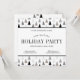Diseño moderno de invitaciones de negocios de vacaciones en negro, blanco y gris sofisticado. Con un sutil fondo de patrón de árbol de Navidad, elegantes fuentes serif y un diseño moderno. Utilice esta invitación para eventos festivos de la empresa perfecta para su fiesta de Navidades del personal, evento de cócteles de vacaciones, funciones corporativas, gala de fin de año y más!