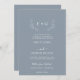 Esta mínima invitación formal a una boda en monograma azul y blanco es perfecta para una boda elegante. El diseño presenta una sencilla silueta azul pizarra clara con un estilo minimalista clásico. Personaliza con las primeras iniciales de la novia y el novio.