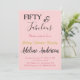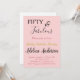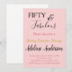 Una divertida invitación de cumpleaños número cincuenta minimalista y caprichosa con texto rosa, dorado y negro que puedes personalizar y enviar para celebrar tu cumpleaños cincuenta. Las palabras "Cincuenta y fabuloso" están sobre un fondo rosa con una tipografía de letra script popular.