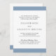 Moderno todo en una sola invitación a la boda con una audaz banda azul polvorienta por encima y por debajo. Sus nombres están en una fuente serif clásica y sus detalles se combinan con una fuente serif moderna y un guión elegante. La parte posterior tiene una banda en la parte inferior junto con los detalles adicionales; no se requiere tarjeta de gabinete independiente. Este diseño sencillo y mínimo, con una redacción tradicional, es ideal para un boda formal.