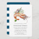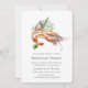 Un conjunto de cangrejos hierven las invitaciones de la fiesta de compromiso con temas de mariscos para su próxima barbacoa o fiesta relacionada con el marisco.  Estas invitaciones incluyen un simple texto negro, junto con un único ilustracion de cangrejo centrado en la parte superior. En el reverso de la invitación hay un telón de fondo a rayas de Ocean Blue.  Todos los elementos de esta invitación se pueden ajustar mediante la función personalizar.  Diviértete añadiendo tus propios detalles y haciéndolo propio.
